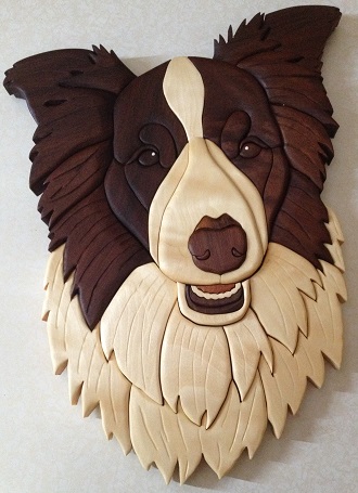 Mixed Solid Wood wallmounted Border Collie Intarsiaa.